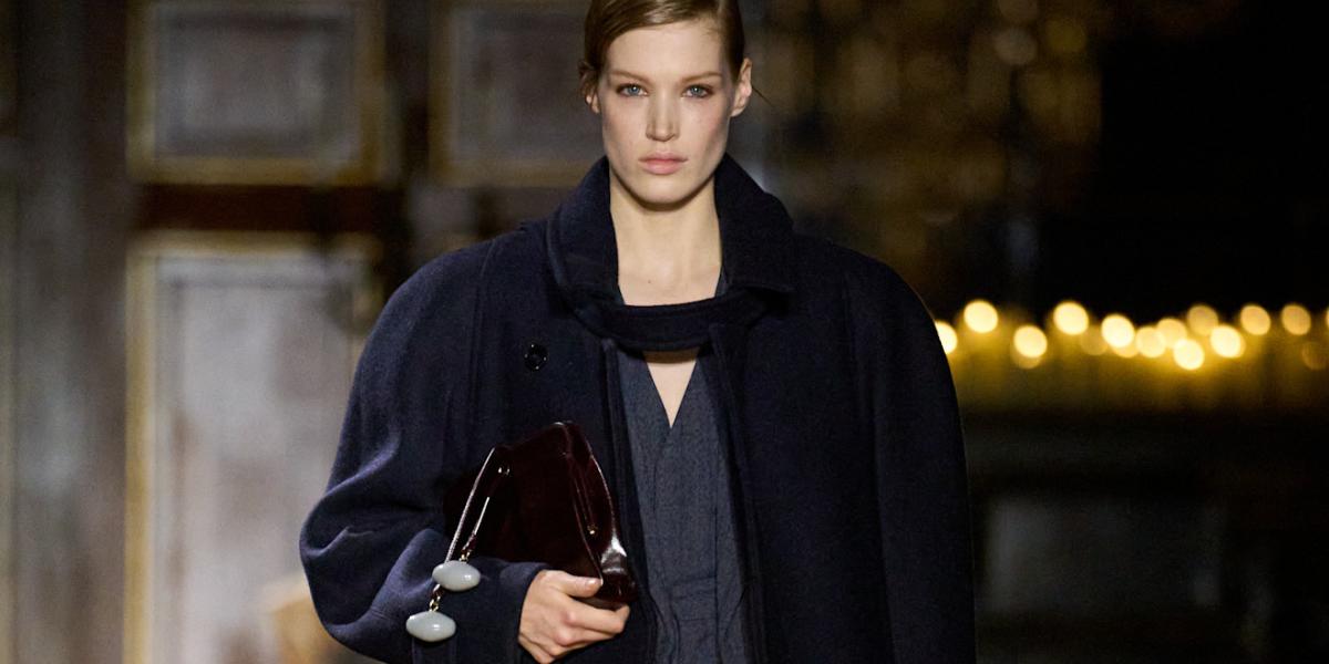وتميزت المعاطف بقصاتها الواسعة والمنسدلة، بما في ذلك معطف كحلي بشريط عريض في الخلف افتتح العرض، ومعاطف ترنش بأكتاف مزينة، وسترات بومبر بياقات من الفرو وأكمام دائرية بارزة.