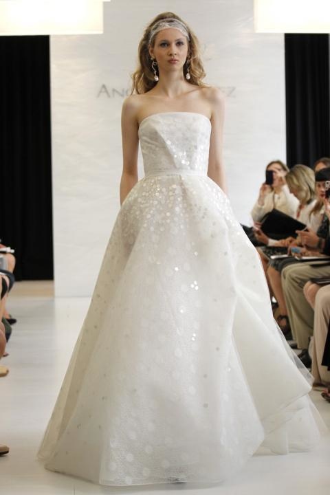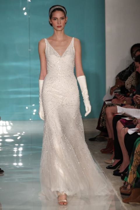 شهدت منصات عروض فساتين الزفاف العالمية لربيع 2013 نقاوة برّاقة بفضل ترصيع القماش الأبيض بالأحجار الصغيرة اللامعة والكريستال واللؤلؤ مما فرض تياراً جديداً.