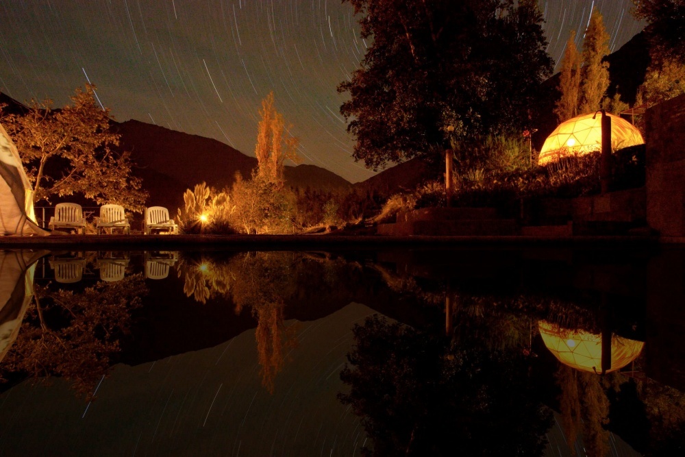 فندق Elqui Domos تشيلي حيث تتميز حديقة هذا الفندق الصغير بالسماح للمسافرين بالبقاء داخل العديد من الأكواخ القماش الموجودة بها وكل منها يحتوي على سرير تحت سقف يفتح جزئيا ليظهر السماء ومن أكثر الزائرين لهذا الفندق علماء الفلك.