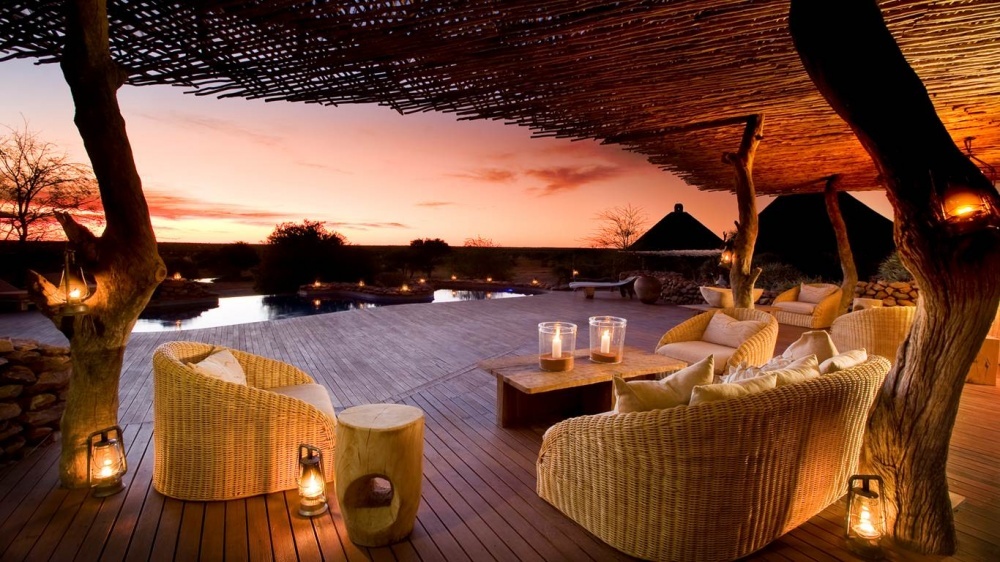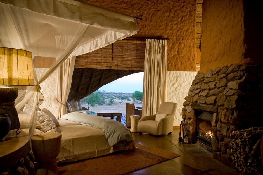 فندق Tswalu Kalahari تسوالو كالاهاري بجنوب أفريقيا والذي يقع بصحراء جنوب أفريقيا ويسمح لمحبي الطبيعة بالنوم بين أصوات الأدغال التي تحيط بهم بينما تتأمل في نجوم السماء بالليل كما يمكن للضيوف أيضا النوم على شرفة فاخرة بنيت فوق سطح مرتفع لضمان الحماية من الحيوانات البرية.