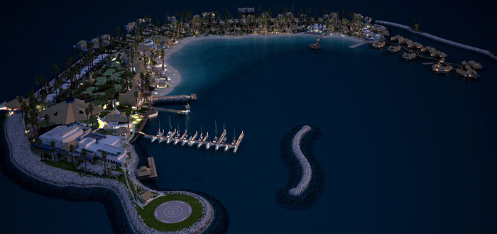على بعد 20 دقيقة من قلب العاصمة القطرية الدوحة توجد قوارب فاخرة تعبر المياه للوصول إلى جزيرة خلابة، بينما توفر منصة الهيلكوبتر الخاصة تجربة وصول مميزة مع الاستمتاع بمشاهدة الساحل من السماء.