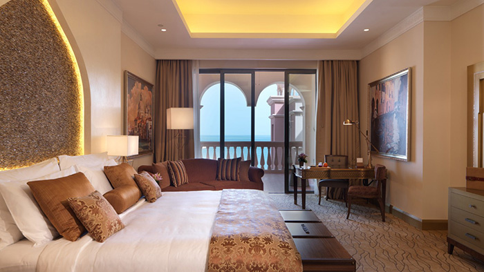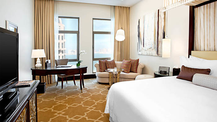 ويضم الفندق 336 غرفة منها 70 جناحاً بديعاً جميعها تطل على مياه الخليج الزرقاء الهادية ، وقد استقى هذا الفندق إلهاماته من الكثبان الرملية والطراز المعماري التاريخي في الأماكن المحيطة في هذا المكان الخالد في الدوحة.