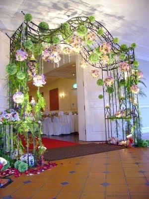 وعن أنواعه تقول منى: "أستوحي تصميمه بالإجمال من فكرة الزفاف، فممكن أن يكون من وحي الطبيعة أي من الأغصان المنحنية والمزينة بالورود البيضاء أو الملونة، وممكن أن يكون على شكل معين من الحديد الأبيض يزين بقماش التول والورود معاً، وقد يدخله الكريستال أيضاً، أو حتى الإضاءة إذا ما استخدم داخل الصالة وهذا ما يجعله أكثر جمالاً في الأماكن التي تفتقد إلى الإنارة الطبيعية".