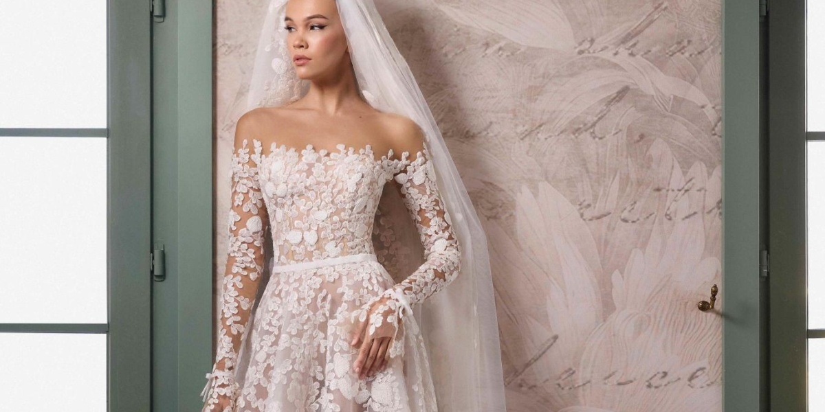 تتألق الفساتين بتفاصيل دانتيل زهري ثلاثي الأبعاد يتحرك مع كل انحناءة للمرأة، فيما يضفي اللؤلؤ الناعم وهجًا رقيقًا يعزز الفخامة والأنوثة. خصور الباسك المنحوتة بعناية تبرز خطوط القوام بانسيابية متقنة، بينما تنانير الـA-Line الطويلة تمنح الإطلالات حرية الحركة وسينمائية الرومانسية الصامتة، حيث يتفاعل الضوء مع تفاصيل التطريز ليخلق تأثيرًا شاعريًا.