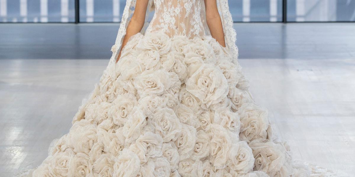 فستان زفاف بتطريزات الورود من توقيع مونيك لولييه