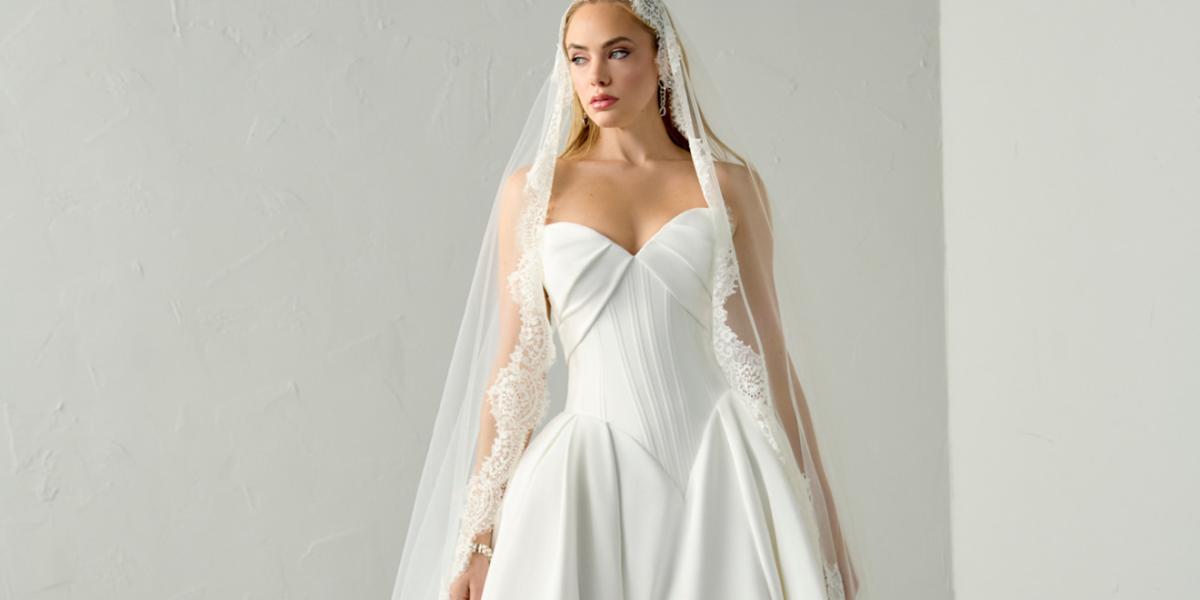 الخصر الباسك في فساتين الزفاف… هندسة أنثوية مستوحاة من فن الكورسيه