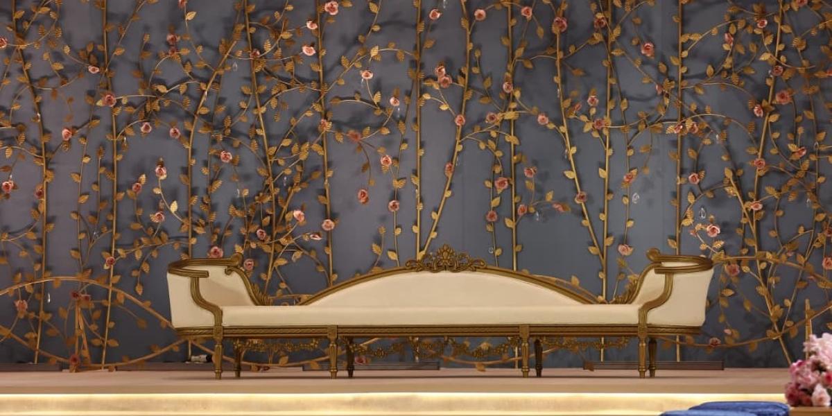 اللون الذهبي يزين ديكورات خلفيات الكوشة