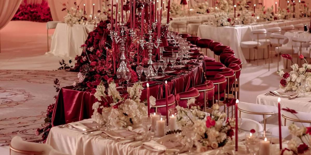طاولات الزفاف باللون الأحمر… نبض الحب في قلب الاحتفال