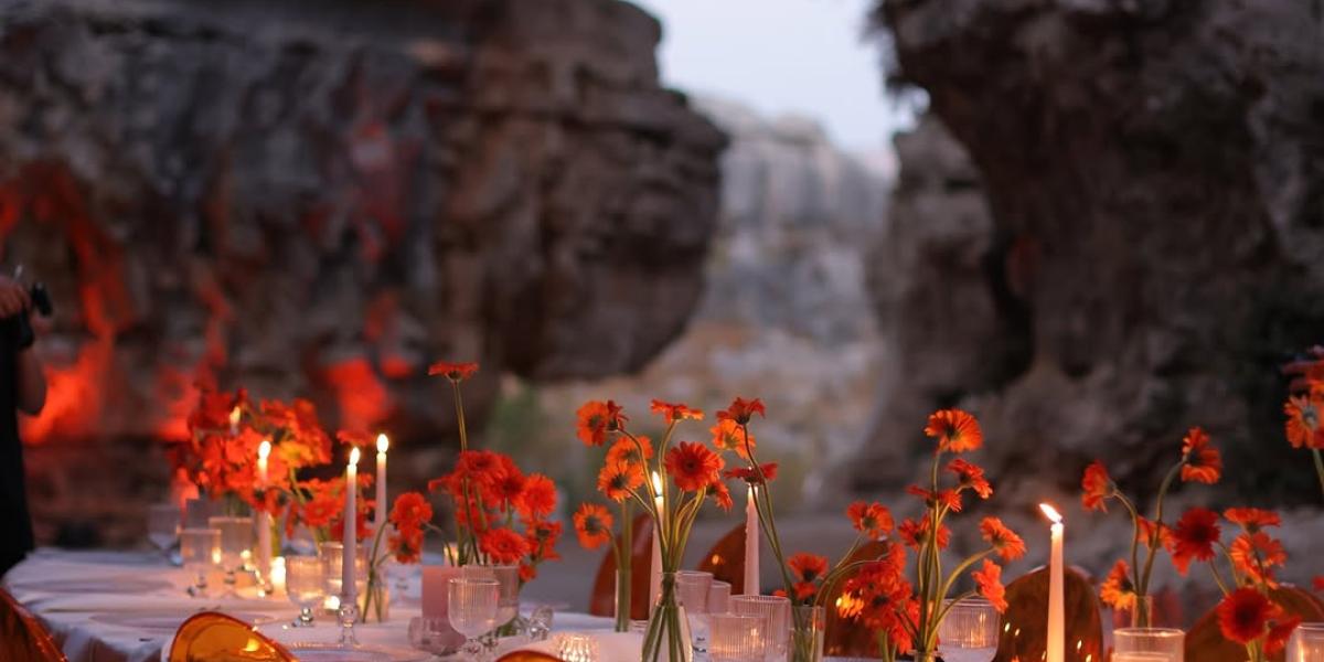 تلعب الشموع في حفلات الزفاف المقامة وسط الزهور دوراً أساسياً في خلق أجواء دافئة وحميمية، حيث ينساب ضوؤها الناعم بانسجام مع المحيط الريفي ليواكب الانتقال الهادئ من ضوء النهار إلى سحر المساء.