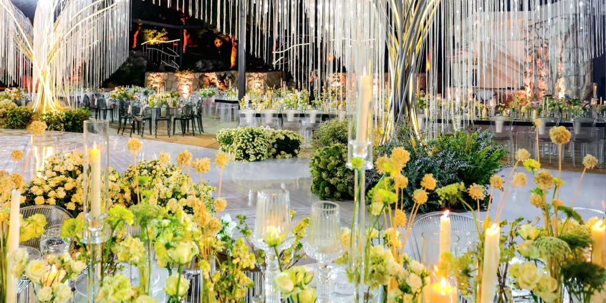 يُضفي استخدام اللون الأصفر في حفلات الزفاف الربيعية دفئًا وبهجةً وانتعاشًا يُجسّد روح فصل الربيع. يمكن دمجه من خلال درجات ناعمة ورومانسية كالأصفر الفاتح، أو درجات نابضة بالحياة ومبهجة كالأصفر الليموني. في هذا الزفاف الربيعي من تصميم نيكول لبس امتزجت الزهور الصفراء مع درجات الباستيل ولأبيض الناصع فأعطت طابعاً كلاسيكياً. واللمسات الرومانسية تجسدت بالزهور الصفراء الرقيقة والناعمة لإضفاء جو رومانسي، مع الطاولات والكراسي الشفافة اكتملت صور الزفاف الربيعي الزاهي.