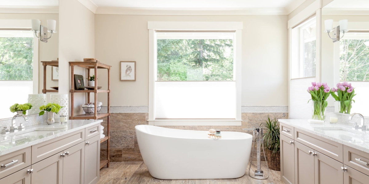 وفي حمام الضيوف الصغير المساحة والحمامات الحديثة الواسعة على حدٍ سواء، يمكن للمواد المستخدمة أن تلعب دورًا كبيرًا في تحديد الجو العام للمساحة، فالرخام ذو العروق الدرامية والغنية يمنح المكان فورًا طابع الفخامة والترف، بينما يضفي حجر الصابون الداكن والبارد إحساسًا أكثر هدوءًا واسترخاءً مع لمسة من الغموض.