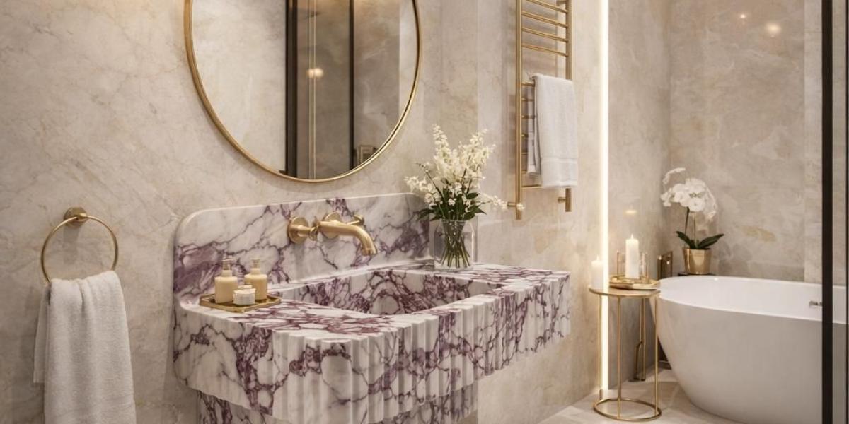 وينصح الخبراء بمزج الرخام مع إكسسوارات نحاسية راقية وإضاءة ناعمة لتحقيق أعلى درجات الفخامة.