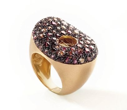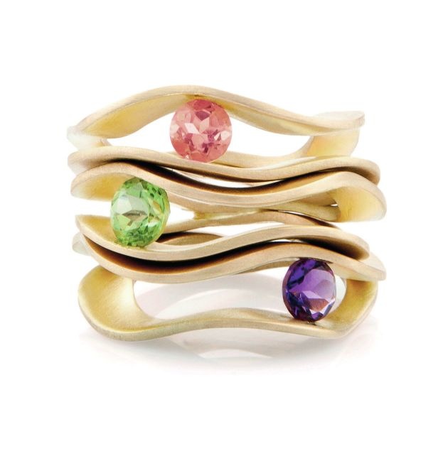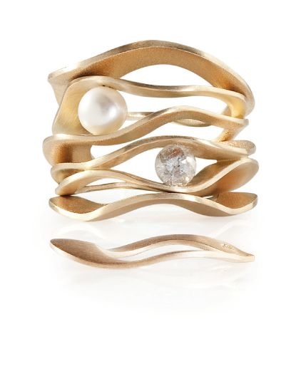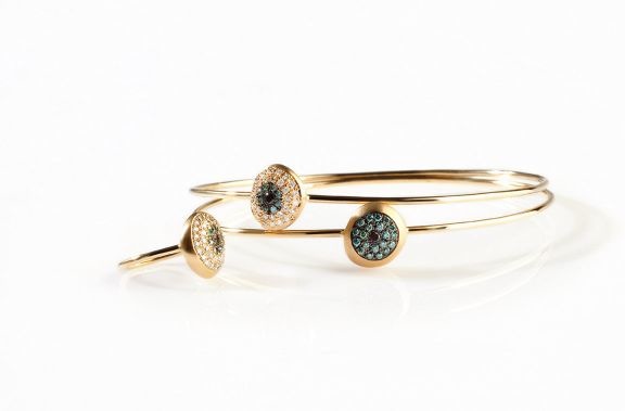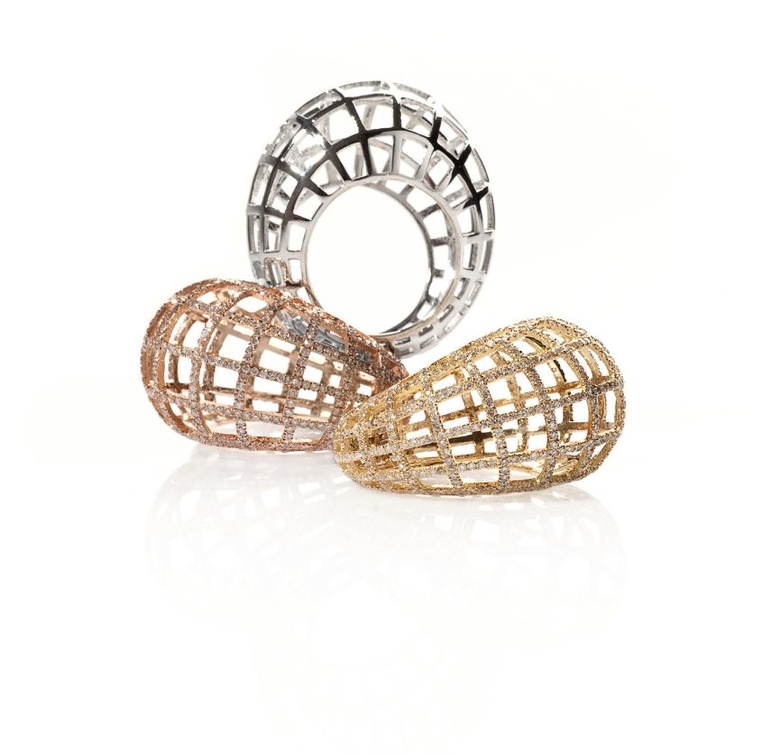 أستعين فقط بذهب بعيار 18 قيراطا، وهو الأكثر شعبية، لأنه قوي لكن سهل العمل والتحكم فيه، كما أن لونه مثالي، فهو ليس داكنا مثل الذهب بعيار 21 قيراطا. أما بالنسبة إلى الأحجار، فغالبا ما أستعين بالماسات السوداء والبيضاء. حاليا أعمل على مجموعة تضج بالأحجار الملونة.