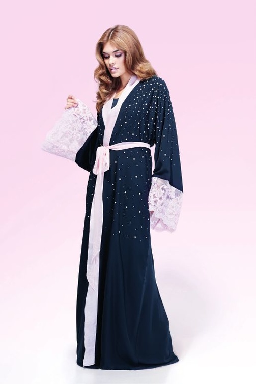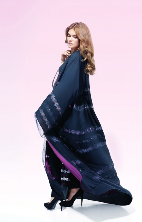 استوحيتها من عالم شواروفسكي المبهر الذي تطغى عليه الأنوثه والفخامة، وهذا ما تتميز به عباءات هانية، تعاونت مع هذه الشركة الكبيرة من خلال حدث "الشواروفسكي يحب العباءة" الذي أقيم في دبي في شهر 11 الماضي. من خلال تحضيري لهذا الحدث استوحيت مجموعتي لربيع وصيف 2014، والتي يطغى عليها اللون الزهري بتدرجاته واستعملت أحجار الشواروفسكي بكثرة. والنتيجة كانت مجموعة مفعمة بالأنوثة والرقي.