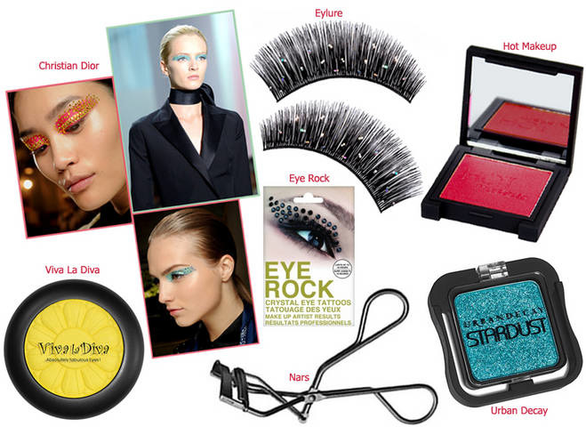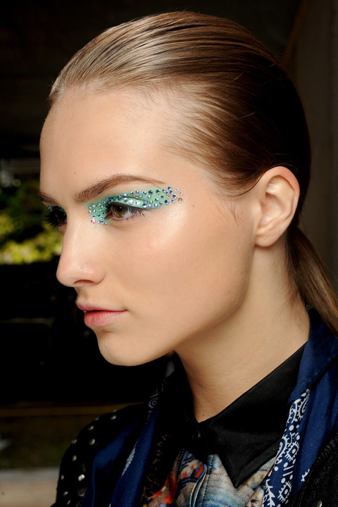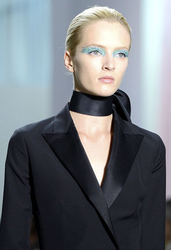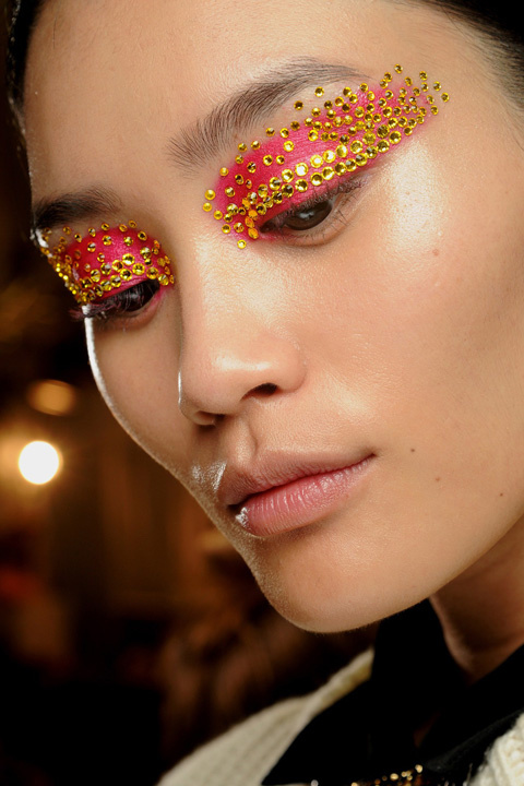 وكان استخدام الألوان الزاهية القوية أبرز ما ميز العرض، مع وضع ظلال العيون بتغطية الجفون بالكامل ، ثم تزيينها بفصوص من كريستال السواروفسكي.
