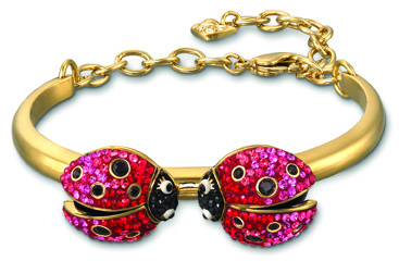 اثنتان من الخنافس البديعة المجسمة ، تحدق كل منهما في عيني الأخرى ، وتتخذ مكانها على ذلك السوار الرومانسي المغطى بالذهب .