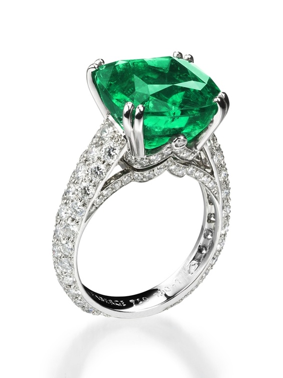 واحد من الخواتم الدراماتيكية ذات الحجر الواحد في مجموعة كنز سوليانكا ، مرصع بوسادة استثنائية من حجر الزمرد .