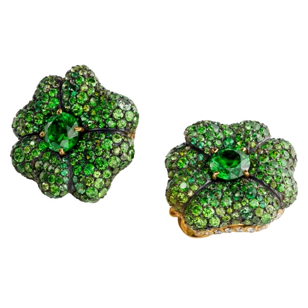 في هذا الزوج من الأقراط ، تمثل كل قطعة منه ورقة برسيم رباعية للحظ ، لتكمل بشكل متناغم خاتم كلوفر الأخضر .