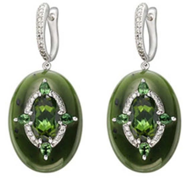 (5 ، 6) أقراط وخاتم التورمالين الأخضر من بوغ أرت :
