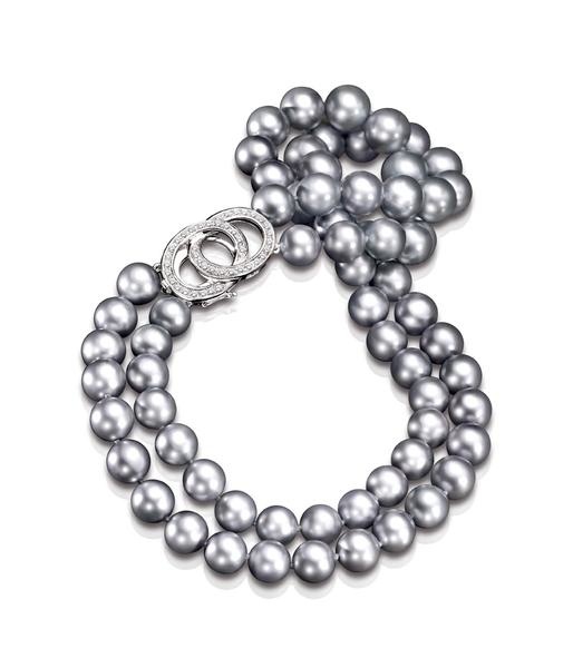 عقد لؤلؤ من مجموعة Mastoloni Exclusive Collection: وهو مؤلف من طبقتين من اللؤلؤ التاهيتي مع قفل من الذهب الابيض المرصع بالماس. للاستفسار عن السعر يرجى زيارة الموقع الإلكتروني www.mastoloni.com علماً لأن قيمة العقد في حدود الـ80 ألف دولاراً.