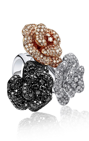 لدينا أيضاً خاتم من "ليالي"، يتألف من ثلاث زهرات جميلة مرصعة بالماس مع تصميم جميل وألوان مختلفة زادت من أناقة وجمال مظهره.