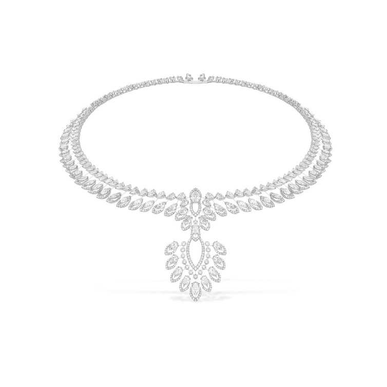 من علامة ميسيكا نختار قلادة Desert Bloom بتصميم يتألق في سحر لافت من وحي الزهور التي تنبت في صحراء أمريكا في فخامة الذهب الأبيض والماس.