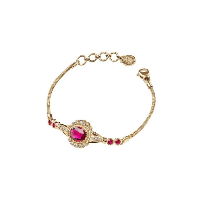 ومن علامة عزة فهمي Azza Fahmy، اخترنا لك سوار ذهب أنثوية مزينة بأحجار الروبي البارزة والألماس الأبيض.
