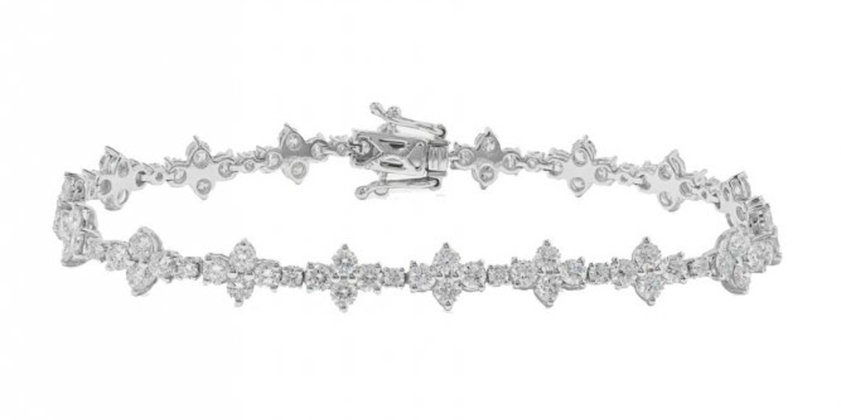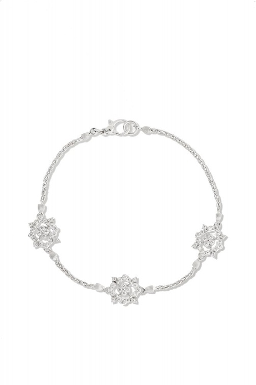 من علامة انيتا كو نختار اسوارة فاتنة بتصميم زخرفي رقيق من وحي الزهور بأنوثة لافتة من الذهب الأبيض وبريق أحجار الماس.