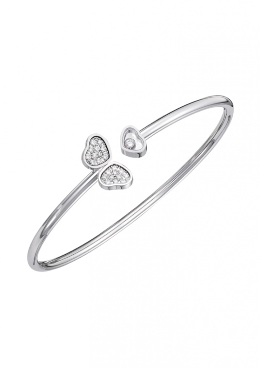 من علامة شوبارد نختار اسوارة Happy Hearts بتصميم عذب وناعم من وحي القلوب في رومانسية حالمة بالذهب الأبيض والماس.