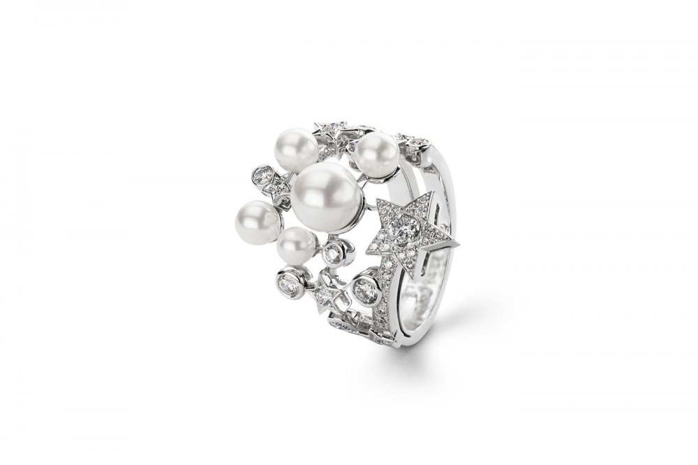 خاتم من مجموعة Cométe من الذهب الأبيض واللؤلؤ والالماس من chanel
