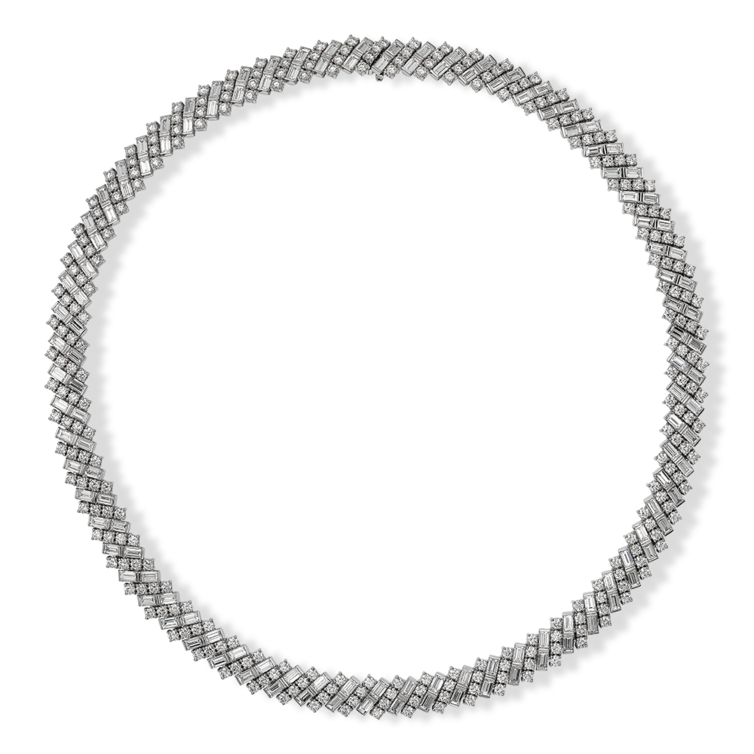 تجمع مجموعة Reflection de Cartier المذهلة لدار cartierالفرنسية العريقة للمجوهرات الفاخرة، قطع الماس المختلفة مع بعضها البعض، مما يخلق إشراقاً وضوءاً خلابين، ومنها اخترنا لعروس هذا الشتاء، عقد رائع أنيق بسيط التصميم مصنوع من الذهب الأبيض ومرصع في تناغم كبير بفصوص الألماس مرصع بـ 264 ماسة قطع بريانت، و 132 ماسة قطع باغيت.