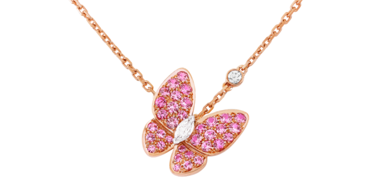 سحر الفراشات الرقيقة تقدمه علامة فان كليف أند أربلز في سلسلة Two Butterfly التي تصور فراشة محلقة في عذوبة ساحرة من الذهب الوردي والماس والياقوت الوردي.
