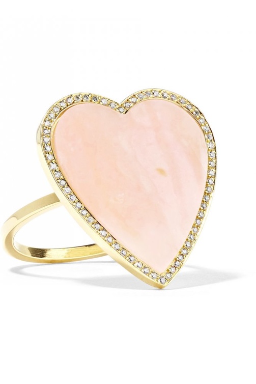 القلب رمز العشق الأبدي قدمته علامة جينيفر ماير في تصميم الخاتم المفضل لدى النجمة تايلور سويفت بسحر الذهب الأصفر وبريق الماس مع حجر الأوبال الوردي.