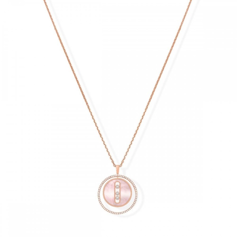 النعومة الأنثوية الرقيقة بلمسة عصرية عبرت عنها علامة ميسيكا في سلسلة Lucky Move المصممة بشكل تميمة أقفال الحظ لتمنح الاطلالة بريق ساحر من الذهب الوردي والماس وعرق اللؤلؤ الوردي.