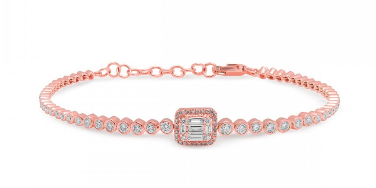 سوار ذهب وردي أنثوي للغاية Diamond Luxe Colette Bracelet مرصع بأحجار الألماس الأبيض حوله بأكمله من علامة آن سيستيرون Anne Sisteron.