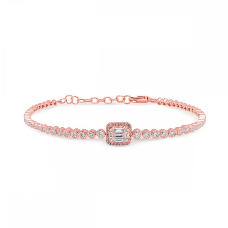 سوار ذهب وردي أنثوي Diamond Ball Stretch Bracelet مرصع بأحجار الألماس الأبيض البارزة على وسط السوار من علامة شاي Shay.