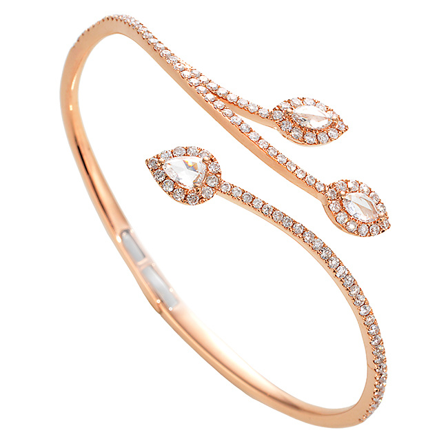 سوار ذهب وردي مفتوح Vine Bangle مرصع بأحجار الألماس الأبيض بأسلوب راقي وفخم جداً من علامة غرازيلا Graziela.