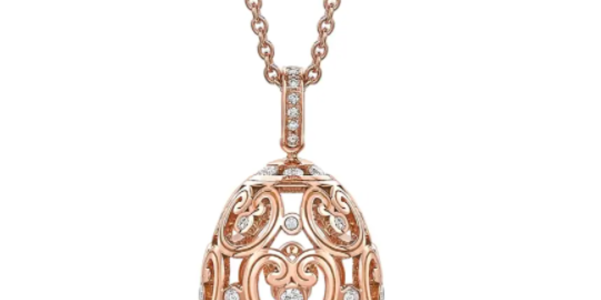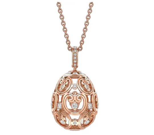 سلسال ذهب وردي فخم من مجموعة Imperial من علامة فابرجيه Fabergé، مزين بأحجار الألماس الأبيض الصغيرة في الوسط على شكل البيضة الشهيرة.