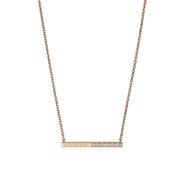 سلسال ذهب وردي عصري من مجموعة Ice Cube من علامة شوبارد Chopard، مزين بأحجار الألماس الأبيض الصغيرة على جهة واحدة فقط.