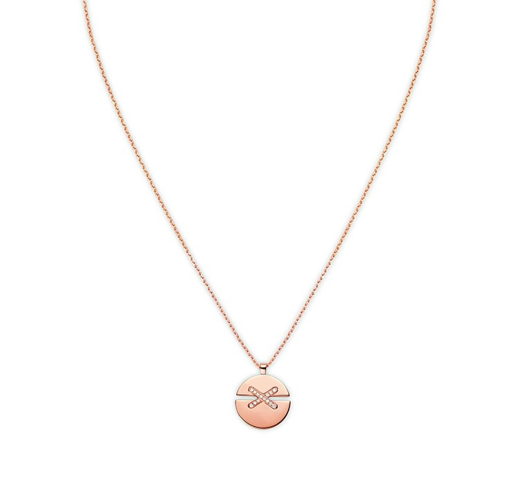 سلسال ذهب وردي ناعم من مجموعة Jeux De Liens من علامة شوميه Chaumet، مزين بأحجار الألماس الأبيض الدائرية الصغيرة في الوسط.