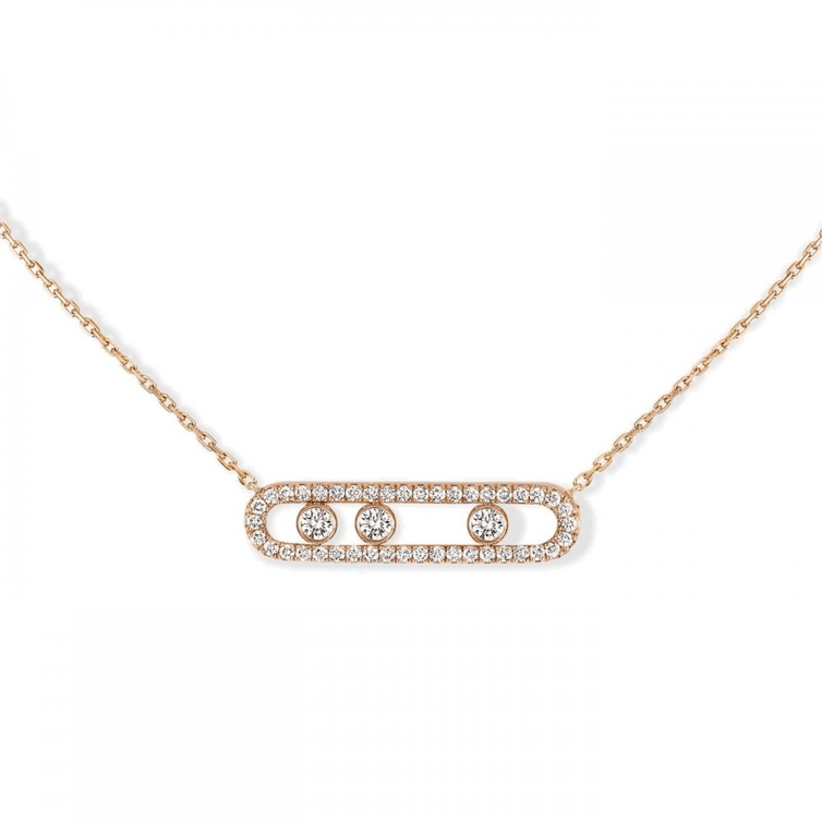 سلسال ذهب وردي عصري من مجموعة Move Pave من علامة ميسيكا Messika، مزين بأحجار الألماس الأبيض الدائرية الصغيرة في الوسط.
