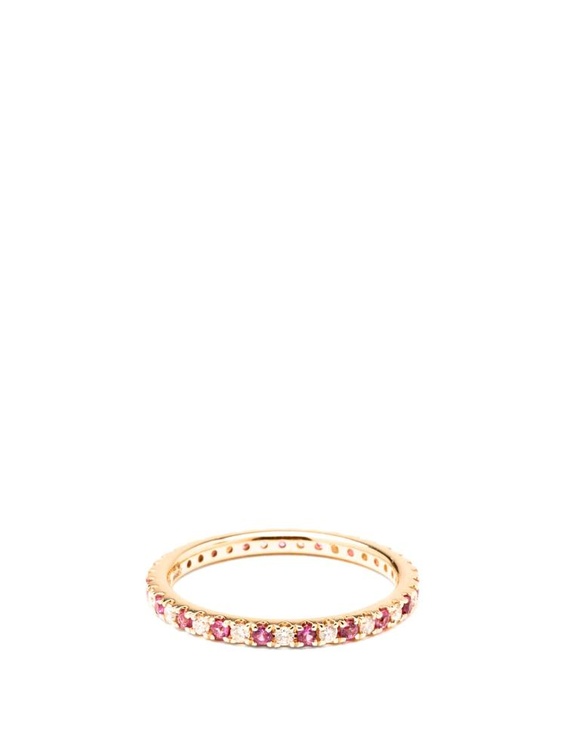 تصميم ناعم ورقيق لخاتم من علامة أنيسا كيرميتش بشكل حلقة من الذهب الوردي المرصع بالماس والياقوت الأحمر.