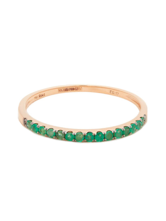 تعشق علامة روزا دي لاكروز الخواتم الناعمة ومنها هذا الخاتم الجذاب بتصميم رقيق من الذهب الوردي وأحجار الزمرد.