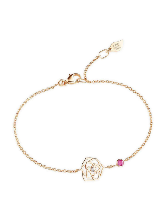 ابتكرت علامة بياجيه اسوارة Piaget Rose في تصميم رقيق وشاعري في شكل الورود المفعمة بالأنوثة وبنمط غرافيكي جذاب من الذهب الوردي وحجر من الماس والياقوت الوردي.