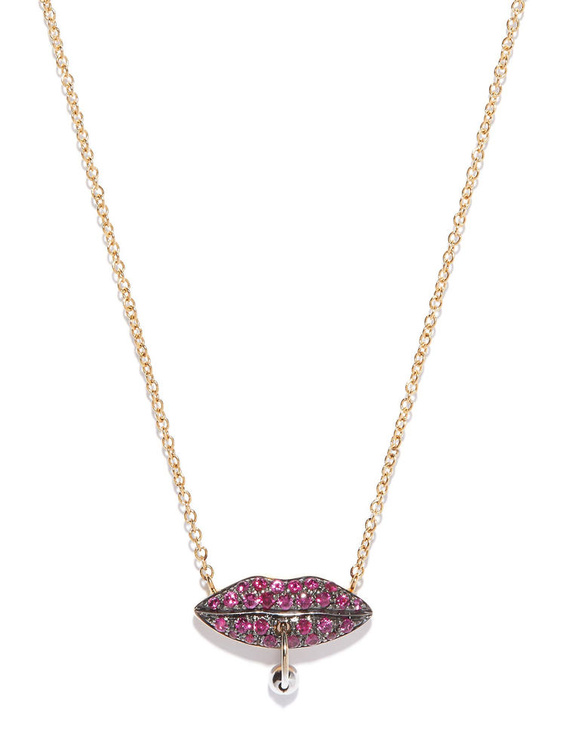 ابتكرت علامة دلفينا ديليتريه هذه السلسلة الجذابة بتصميم طريف ولافت بشكل الشفاه في أناقة الذهب الوردي والأسود وأحجار الياقوت الأحمر.