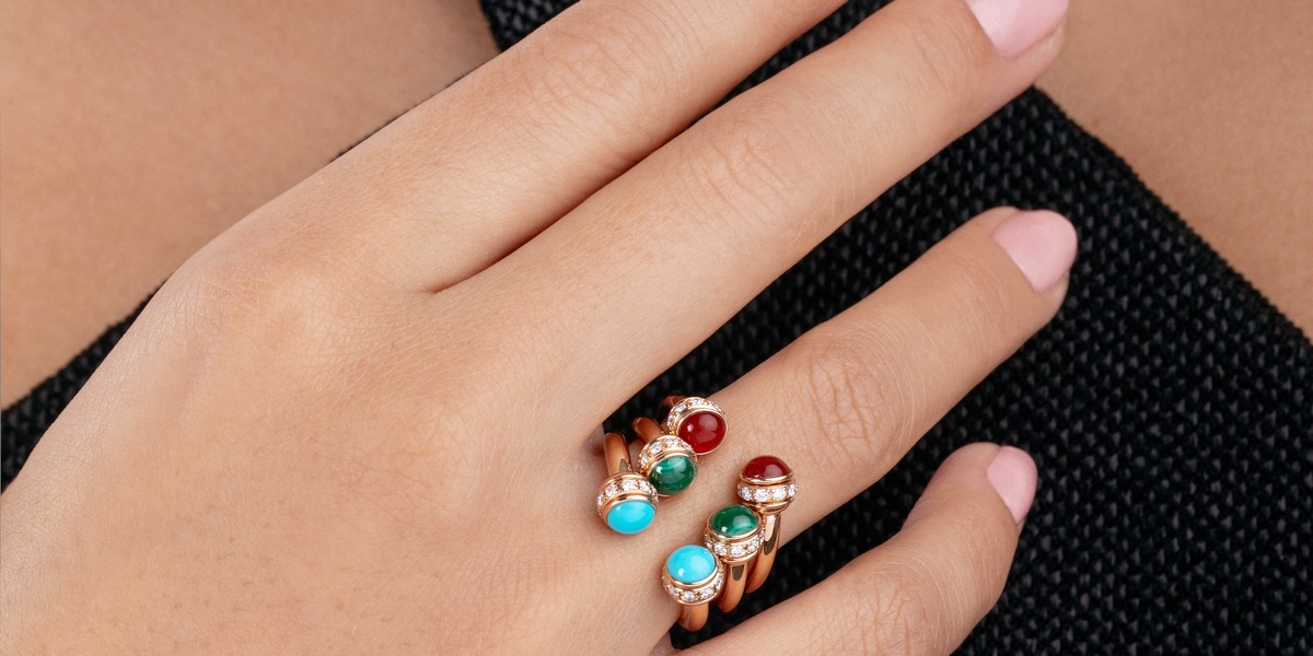 تستمر هذا العام موضة القطع الضخمة في عالم المجوهرات، وهو ما برز منذ بدء انتشار كورونا، فمع ما فرضه زمن الوباء من العمل عن بعد والظهور عبر تقنية Zoom، أصبحت المرأة تميل لاختيار قطع المجوهرات البارزة من حيث الحجم والتصميم، تمامًا كانتقائها للتصاميم ذات الأحجار الكريمة الكبير وبألوان زاهية.