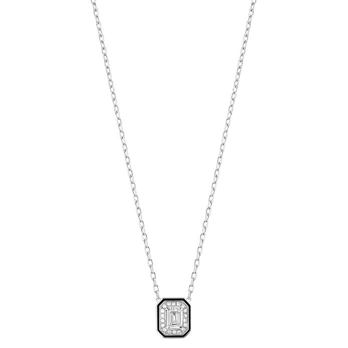 قلادة ليزيري  Liseré من بوشرون Boucheron مصممة من الذهب الأبيض ولاكر الأسود ومرصّعة بماسة بقطع الزمرّد البيضاء. تمنحك هذه القلادة إطلالة راقية وناعمة مناسبة لكل الأعراس