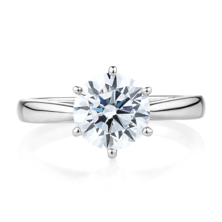 خاتم خطوبة سوليتير دائري لامع مرصّع بالألماس عيار 2.04 قراريط، من الذهب الأبيض عيار 14 قيراطاً.