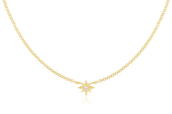 قلادة Diamond Starburst قطعة مستوحاة من نجمة الشمال مع مركز الماس. هذه القلادة متوفرة من الذهب الأصفر عيار 14 قيراطًا أو الوردي أو الأبيض، وتتميز بسلسلة أنيقة وتفاصيل نجمة صغيرة.