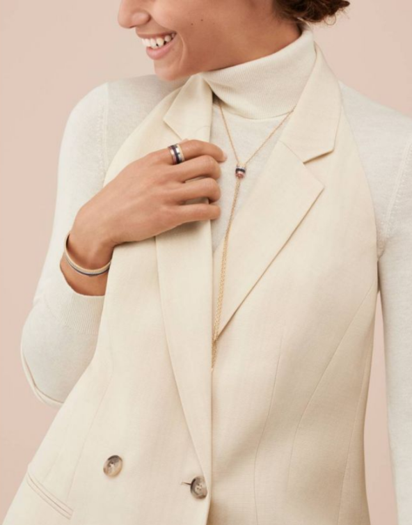 كما ذكرنا أعلاه، ينصحك الخبراء بتكديس قطع المجوهرات المصنوعة من ألوان الذهب المختلفة على شكل طبقات. فعلى سبيل المثال، يمكنك اختيار منطقة العنق وتنسيق عقود من الذهب الأصفر والذهب الأبيض بأطوال مختلفة أو متساوية (ما من شأنه أن يجنبّك تشابكها أيضاً). كما يمكنك ارتداء مجموعة من الخواتم متعددة الألوان.